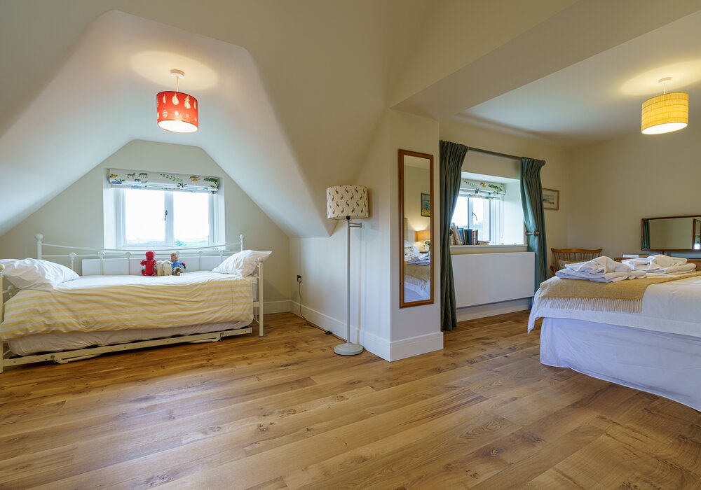 Two double rooms, one twin room, one Family Suite with king size bed and two extra beds. Sitting room, dining room, breakfast area, snug, hall, kitchen, playroom.