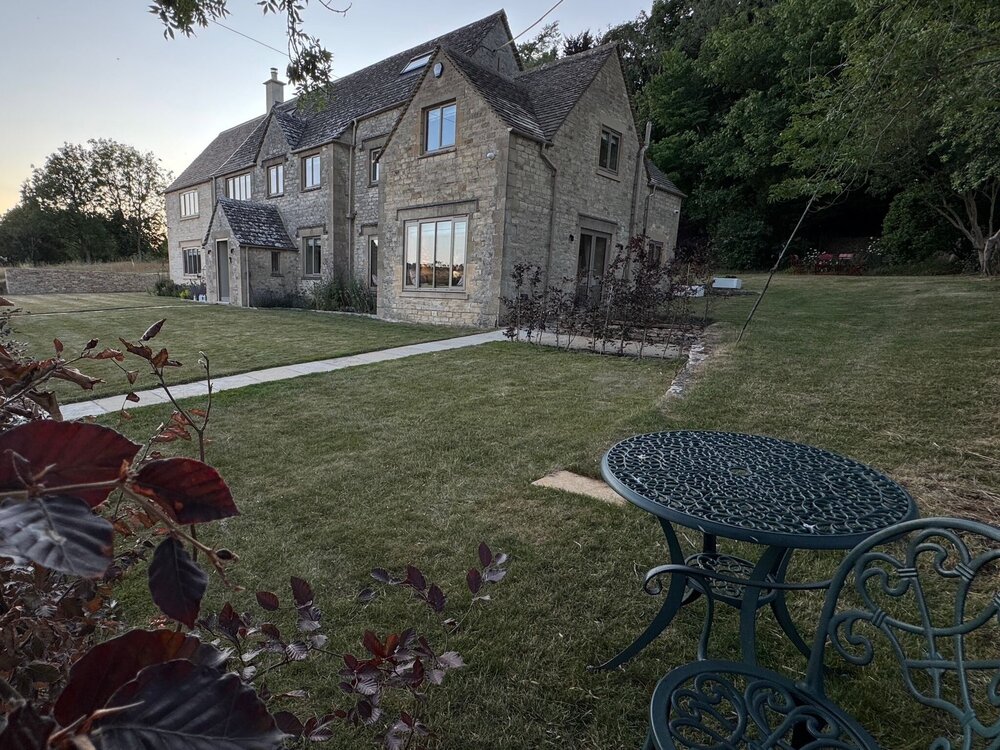Spacious luxury Cotswolds self catering holiday home for family and friends. Set in two acres of grounds including vineyard, paddock, and orchard.